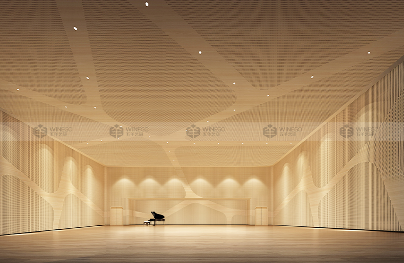 4. 五羊產品槽孔吸音板、孔木吸音板、布藝吸音板、實木通花、木飾面板