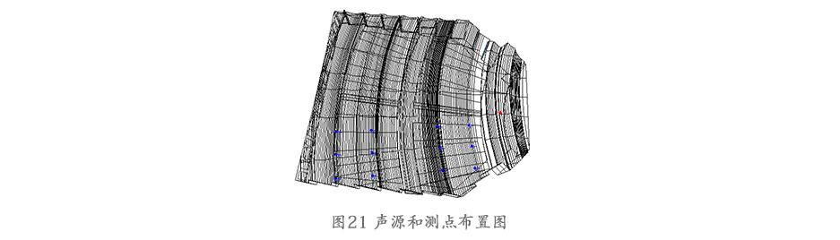 采用計算機聲學(xué)模擬試驗,進(jìn)行聲場分布和早期反射聲測定,主要目的是檢查體形設(shè)計中是否存在缺陷和反射聲的分布并以此為依據(jù)進(jìn)行修正。