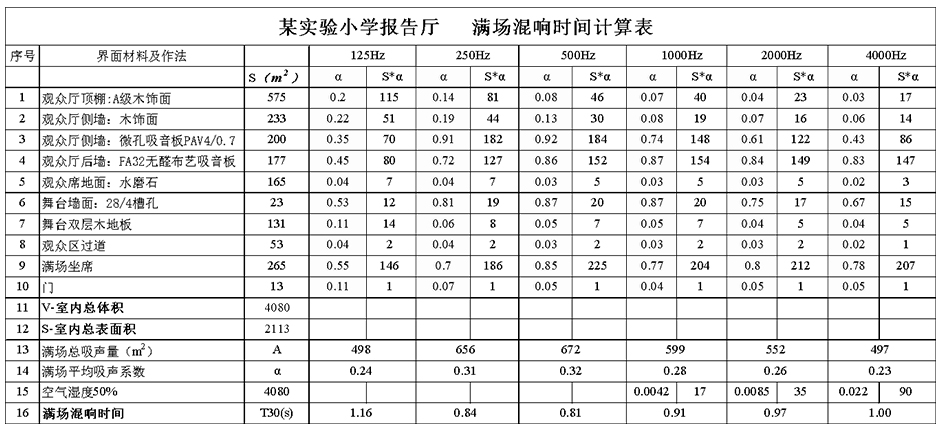 綜上,需對(duì)后墻作強(qiáng)吸聲處理,以降低回聲的強(qiáng)度。