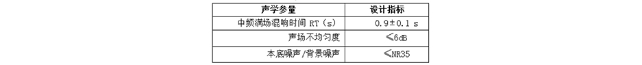 聲學(xué)設(shè)計(jì)原則以擴(kuò)聲為主,良好的聲環(huán)境是電聲系統(tǒng)高效發(fā)揮的基礎(chǔ),要求廳堂建成后具備較高的清晰度。