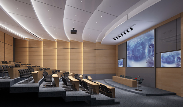 報(bào)告廳設(shè)置有主席臺(tái),主席臺(tái)面積較小與觀眾席位于同一個(gè)空間,觀眾廳地面為起坡形式;報(bào)告廳按照用途可以分為學(xué)術(shù)報(bào)告廳、多媒體報(bào)告廳、階梯教室等;按照?qǐng)?bào)告方式可以分為自然聲和采用擴(kuò)聲兩類,而作為國(guó)際會(huì)議的報(bào)告廳則還要設(shè)有同聲傳譯和即席提問(wèn)的設(shè)施。