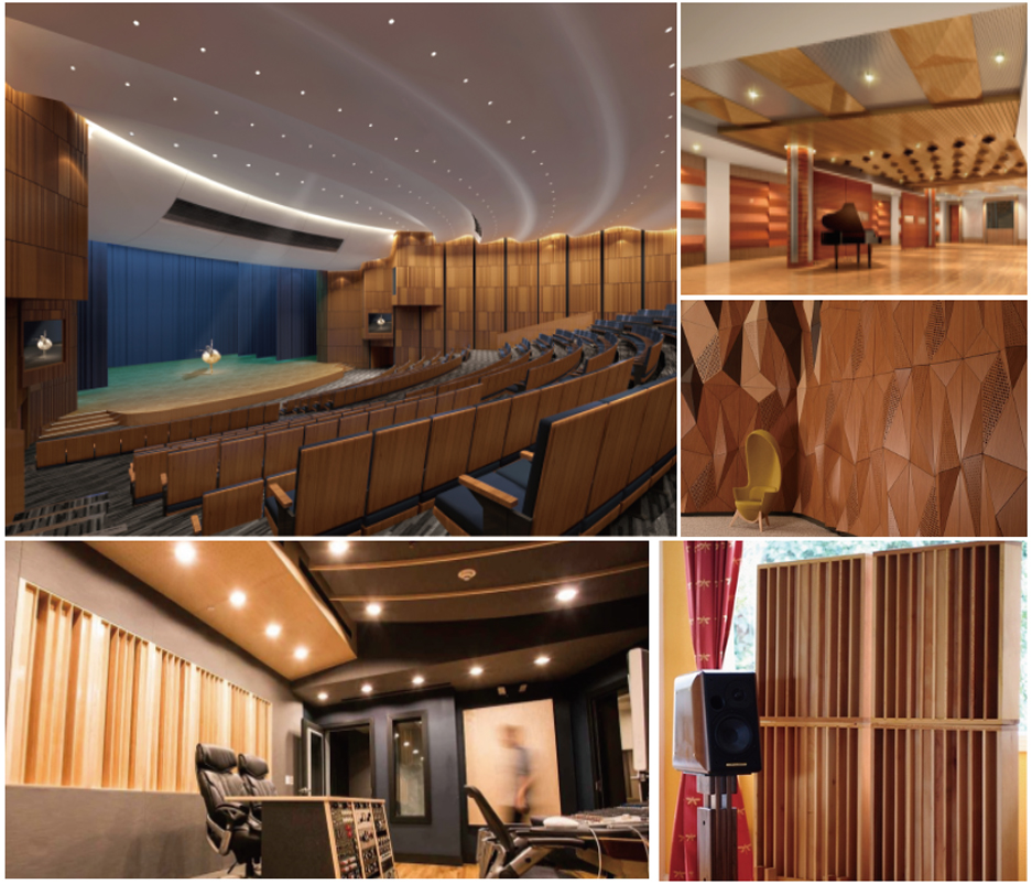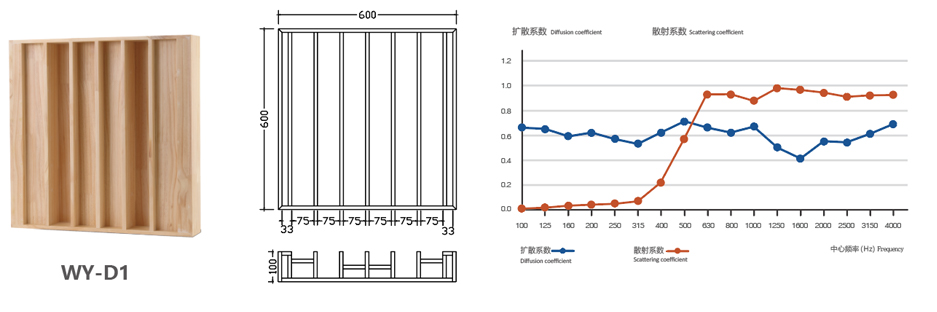 木質(zhì)擴散體是一種不規(guī)則的平面設(shè)計,目的是在反射中產(chǎn)生擴散,它產(chǎn)生的聲音非常豐富而圓潤,混響聲似乎是從許多方向從側(cè)向、從頭頂以及從前方到達聽眾的,可顯著地改善廳堂的音質(zhì)條件。